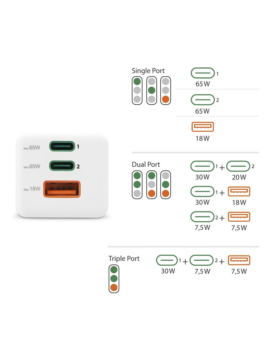 Перфектен за смартфони с висока мощност на зареждане: зареждайте устройства с висока скорост, до 60% за 30 минути, идеален за устройства от най-новите поколения, тъй като те често вече не се доставят със зарядни устройства, включени при покупка