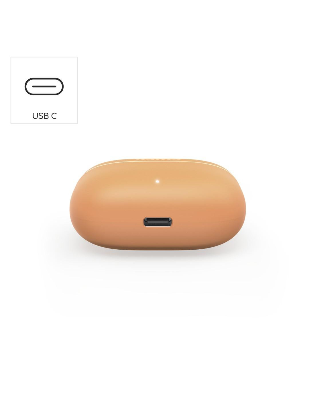 С кутия за зареждане: това означава, че слушалките могат да се зареждат до 3 пъти, докато сте в движение. Кутията за зареждане се зарежда чрез USB-C връзка