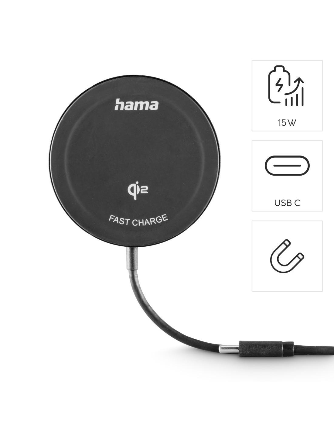 HAMA Безжично зарядно устройство Qi2, 15 W, черно,