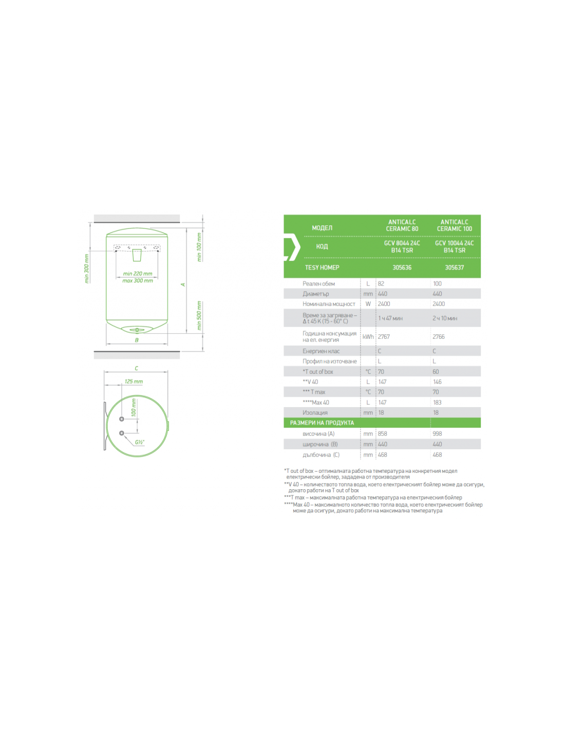 | Номинален обем (л.) | 80 |