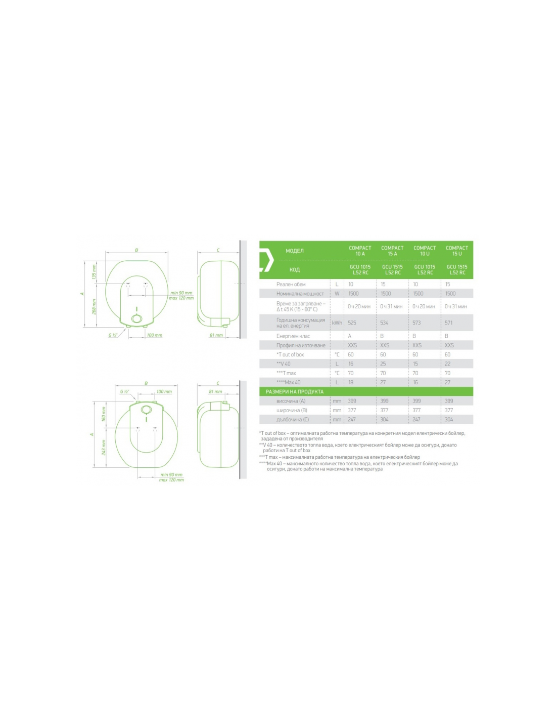 Други по-важни характеристики на бойлер Tesy GCA 1520 L52 RC са: