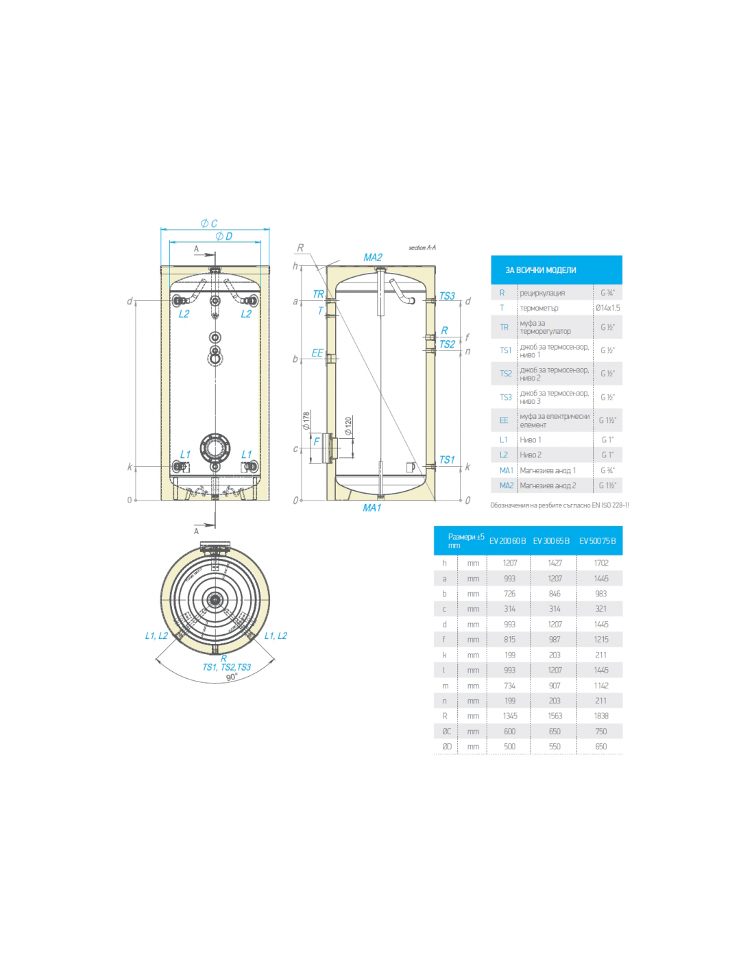 Eмайлиран подовостоящ бойлер за битова гореща вода с възможност да подсигури потреблението на едно и многофамилни жилищни сгради.