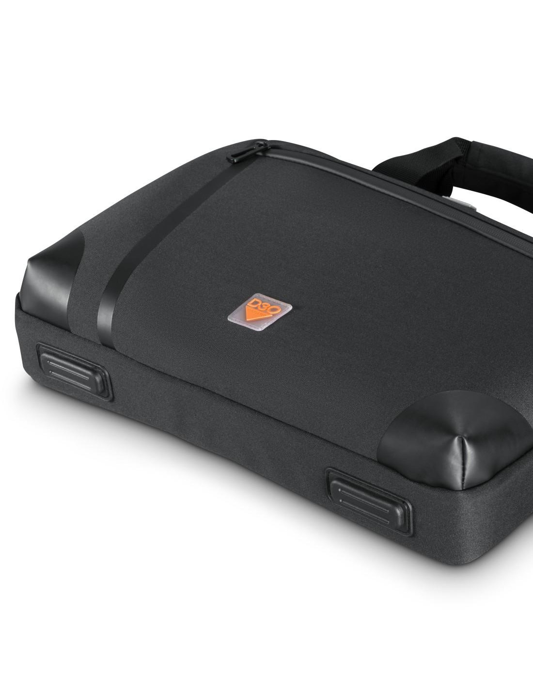 Quite simple: due to its outstanding material properties, elastic D3O is already widely used in Formula 1 racing, for example. To this end, it is used in protective clothing and special protectors for all parts of the body that require a lot of freedom of movement and are particularly at risk in motorsport, e.g. in the event of a fall from a motorbike. As an innovative protective shield, it now also protects your laptop in your business bag: better safe than sorry, no matter how hectic your working day gets. Shockproof protection for you and your devices - so you can go about your day with peace of mind!
