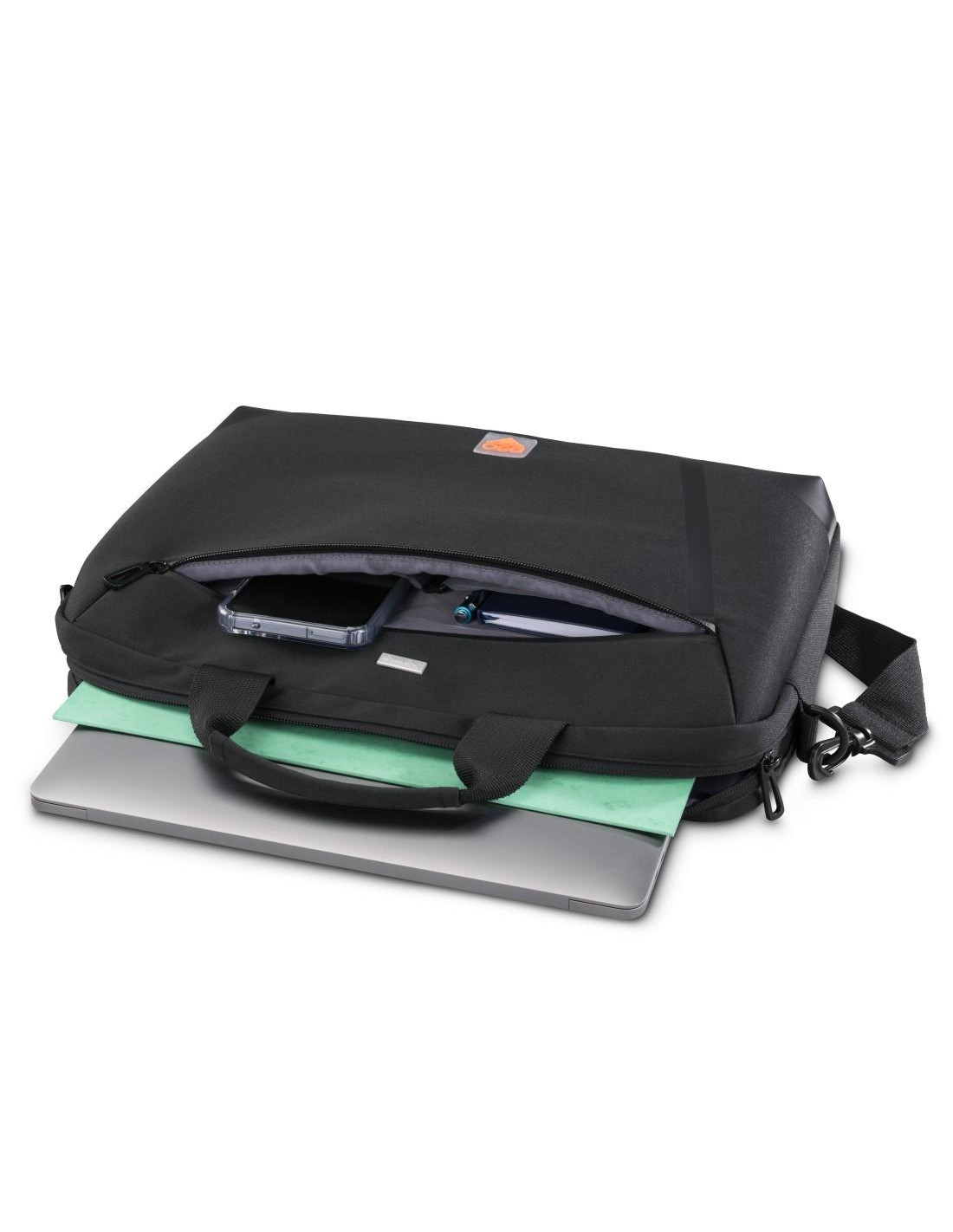 Of course, small accessories are also always to hand: The spacious front pocket with organiser has plenty of room for a smartphone, pens, cables, USB stick and more. Whether in a business meeting or in a café, simply in the office or on the desk in the seminar room - this business bag cuts a fine figure everywhere. In classic black, it goes perfectly with any outfit and emphasises your serious appearance. A design with style, without being obtrusive, for men and women alike: with this slim work bag you are always well dressed and leave a lasting impression.