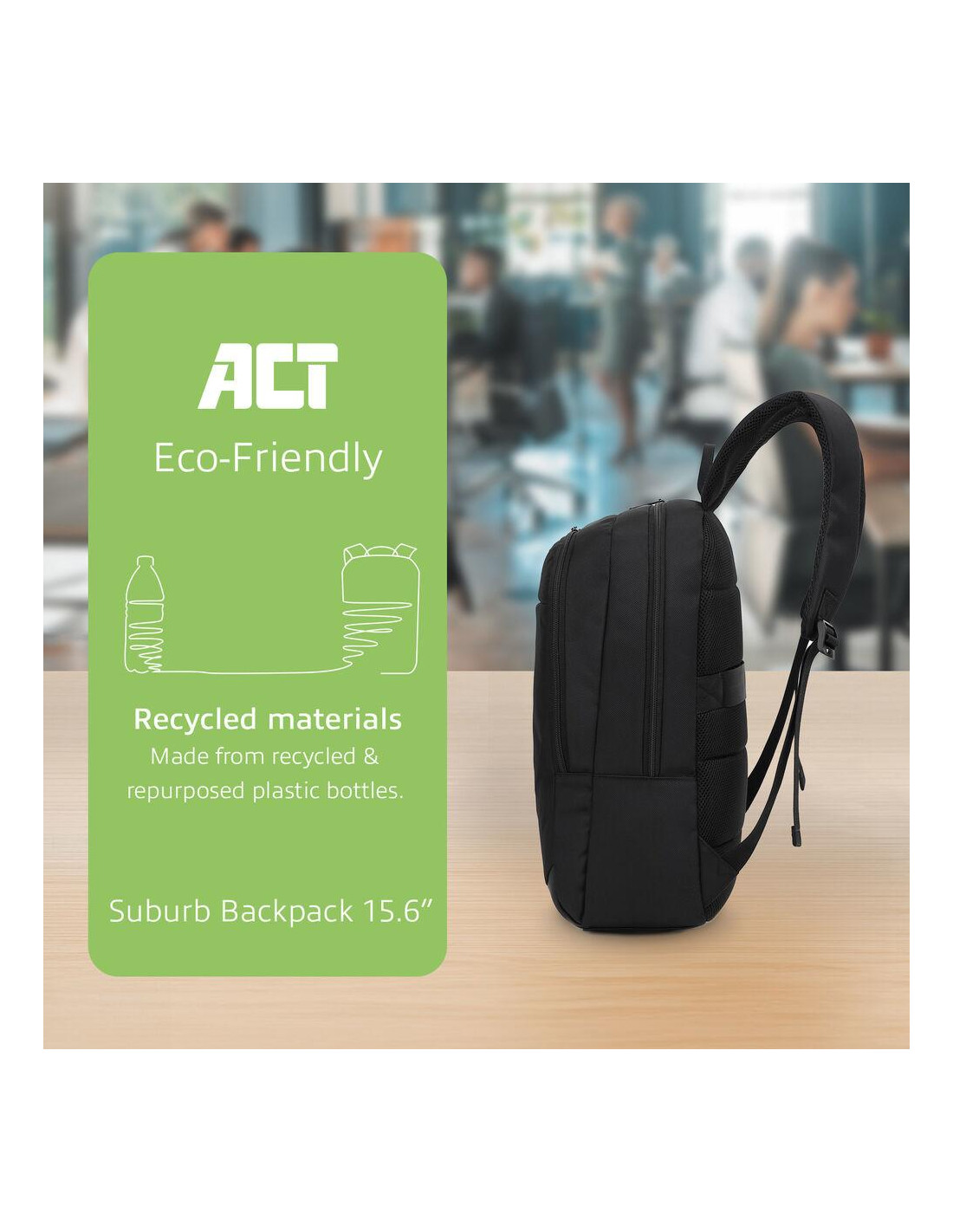 ACT Suburb е ежедневна раница за лаптоп до 15.6", изработена от водонепропусклив плат от рециклирани пластмасови бутилки, с обем 18.5 литра и леко тегло 0.62 kg. Тя предлага отделни подплатени отделения за лаптоп и таблет, три основни секции за аксесоари и документи, както и страничен държач за бутилка и лента за прикрепяне към куфар за по-удобно пътуване.