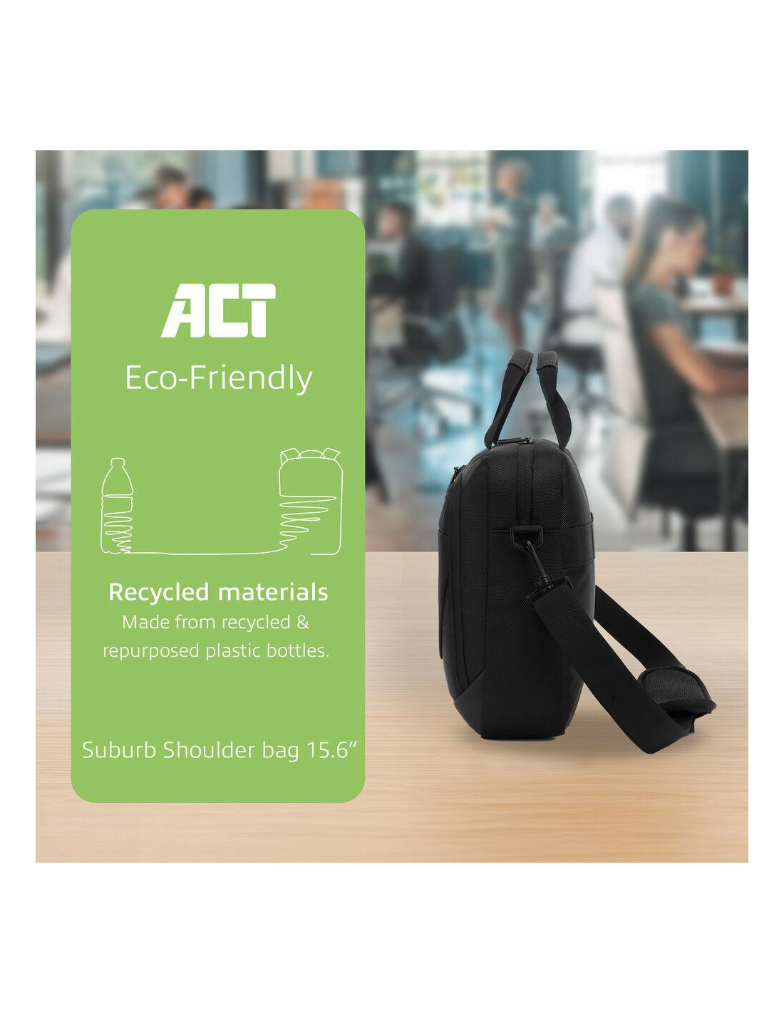 ACT Suburb е стилна и надеждна еко чанта за лаптоп 15.6", създадена от рециклирани пластмасови бутилки. Тя предлага водонепропусклива защита, добре организиран интериор и удобство при ежедневно носене. Подходяща е за работа, университет, бизнес пътувания и градска мобилност.