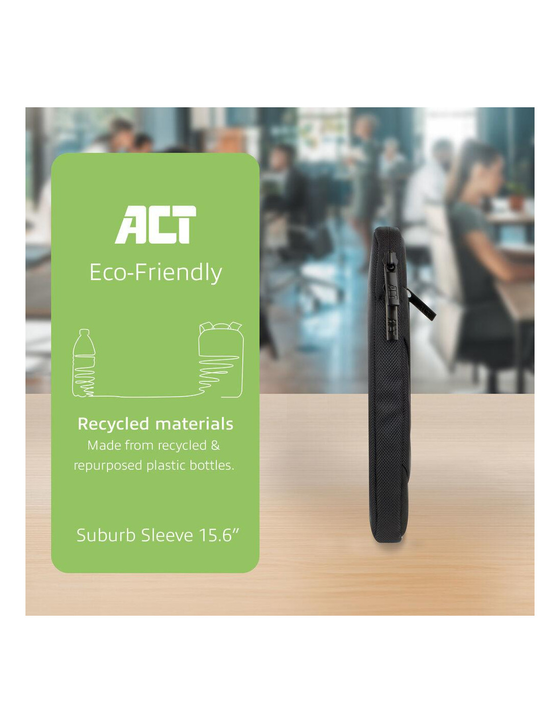 ACT Suburb е модерен и елегантен защитен калъф, проектиран специално за 15.6-инчови преносими компютри. Изработен с мисъл за бъдещето от рециклирани пластмасови бутилки, този аксесоар съчетава надеждна безопасност за вашата техника с устойчив екологичен подход.