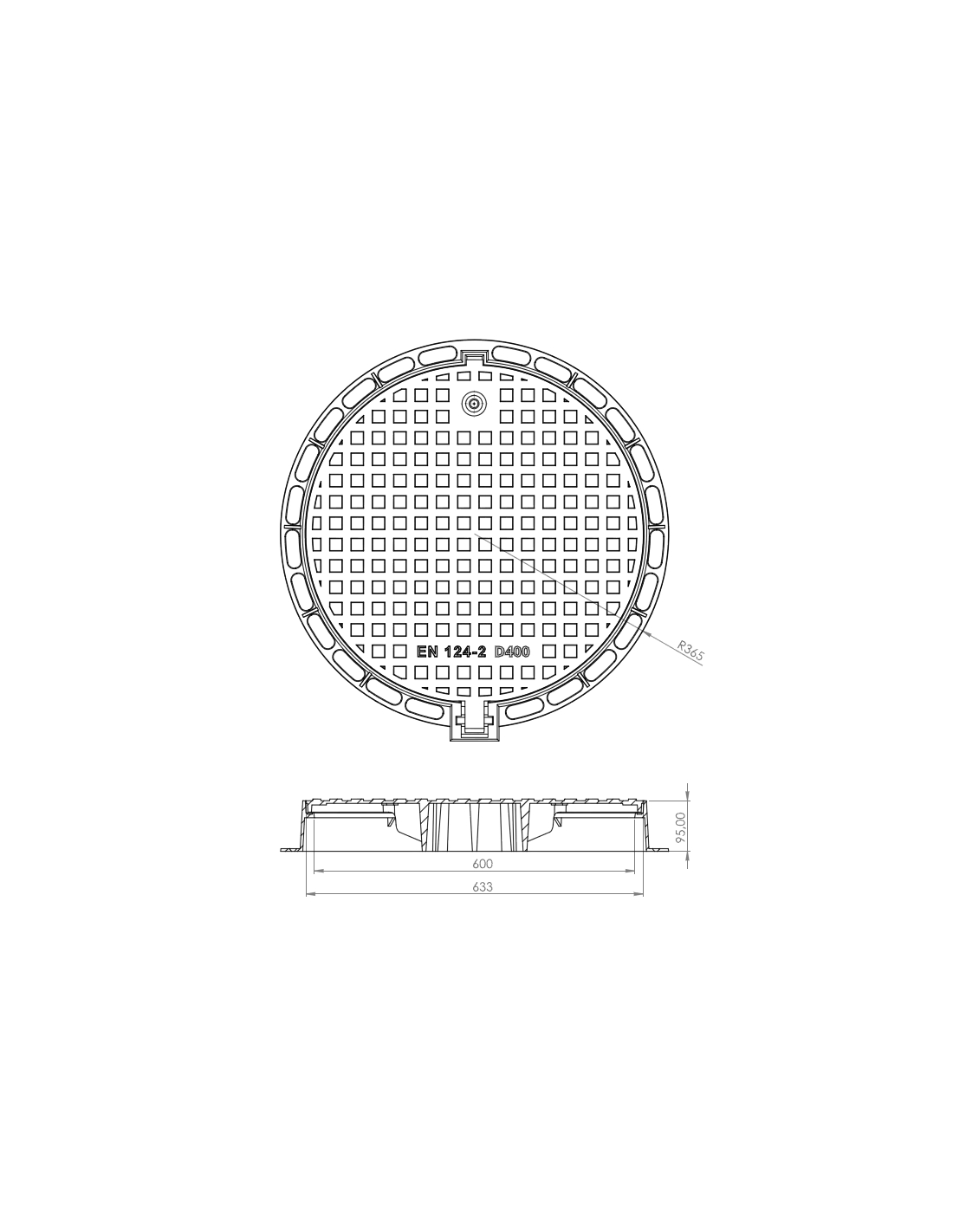 Чугунен капак Ø600 D400 /P/ H100 плътен /RUBIN 2001/
