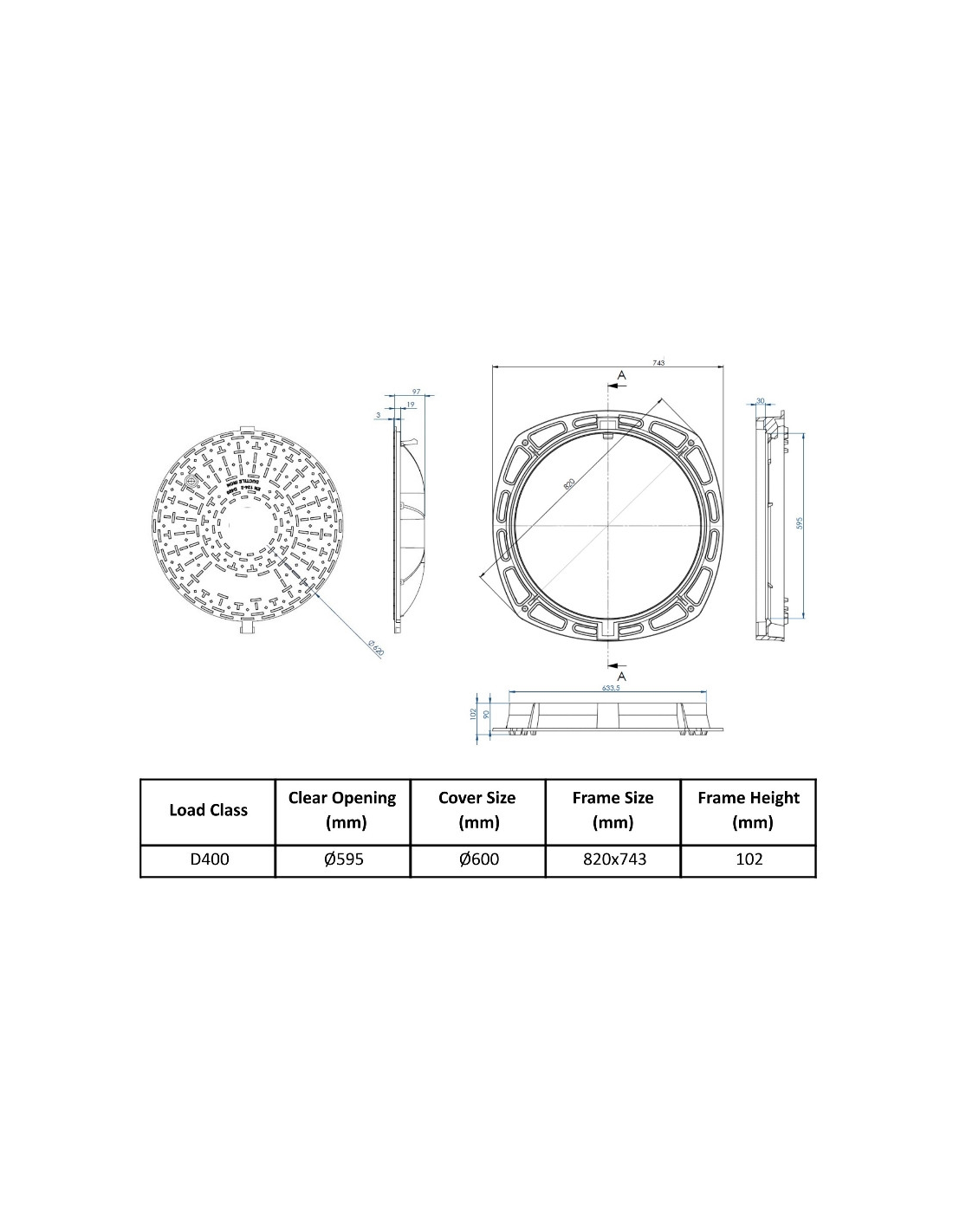 Чугунен капак Ø600 D400 /P/ H100 плътен /RUBIN 2001/