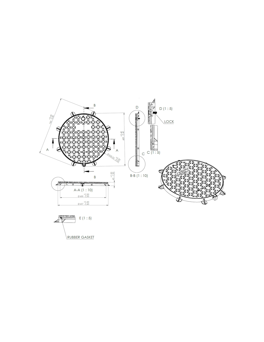 Чугунен капак Ф600 D400 H100 вентилиран със заключване