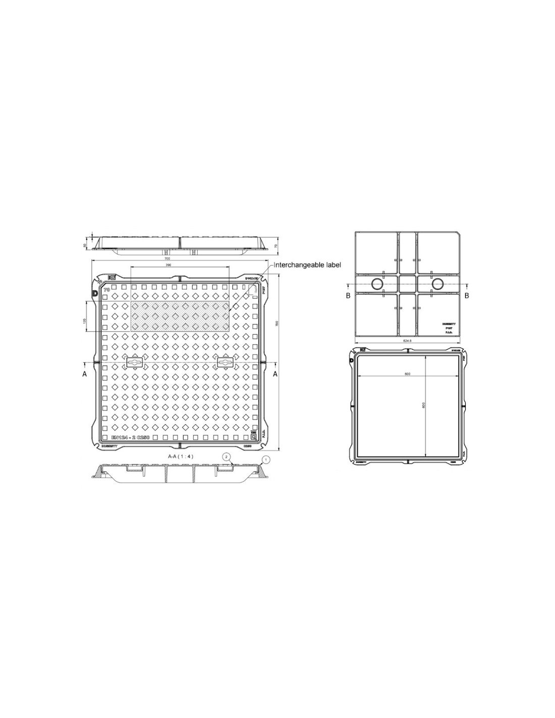 Чугунен капак 600x600 C250 /P/ H51