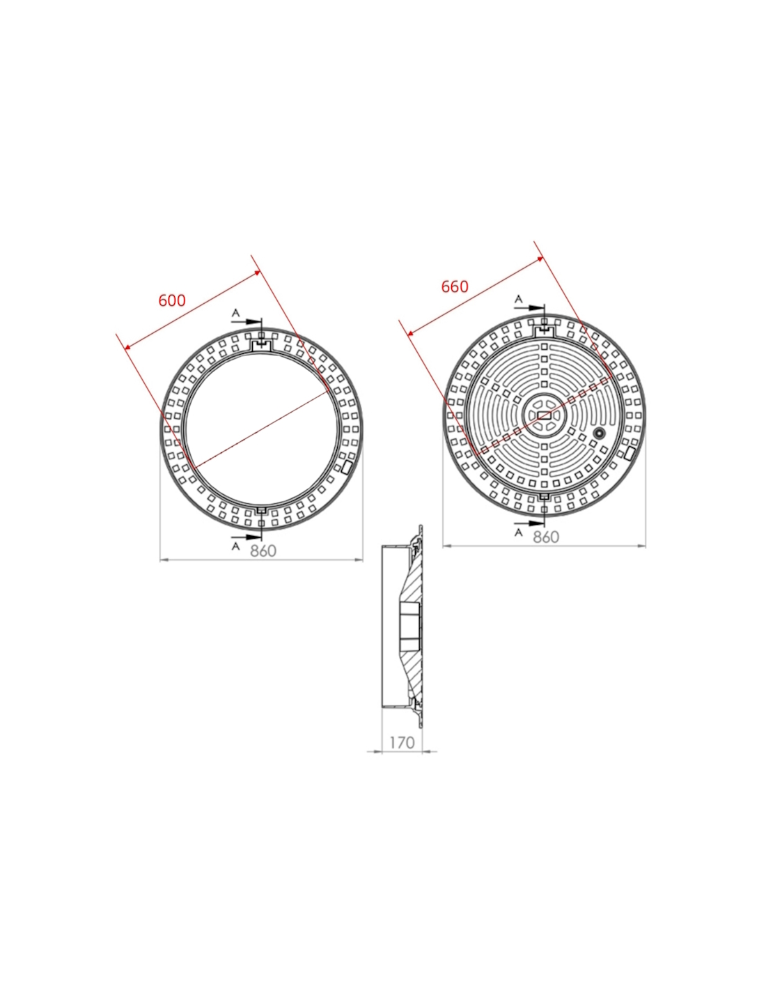 Чугунен капак Ø600 D400 /P/ H100 вентилиран /RUBIN 2001/