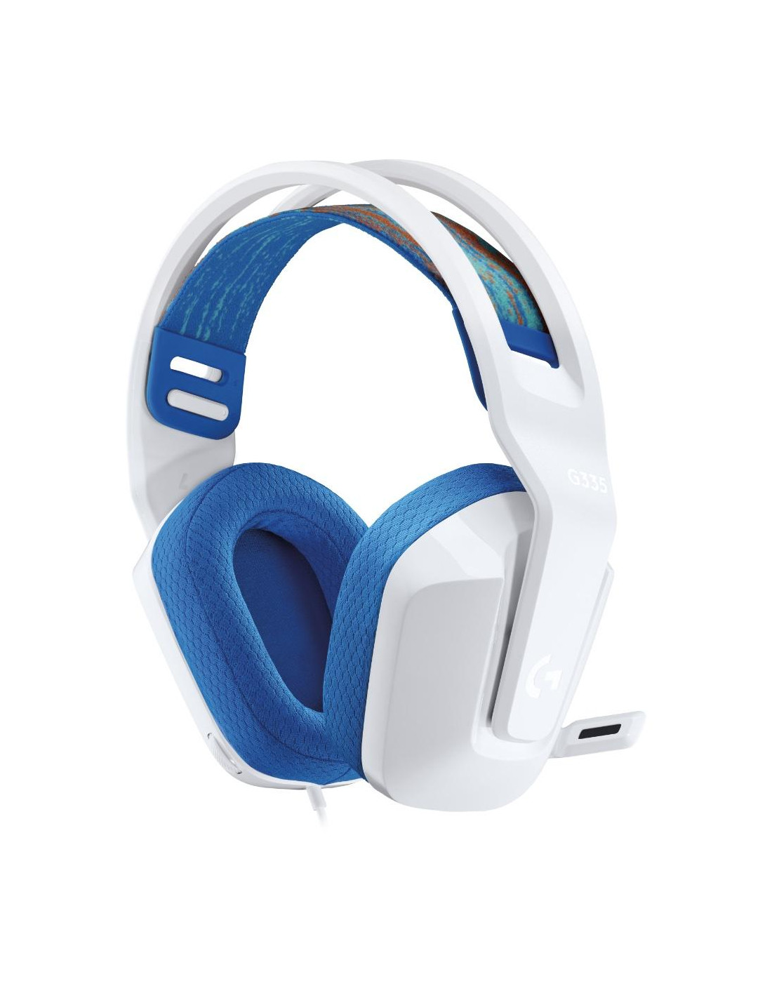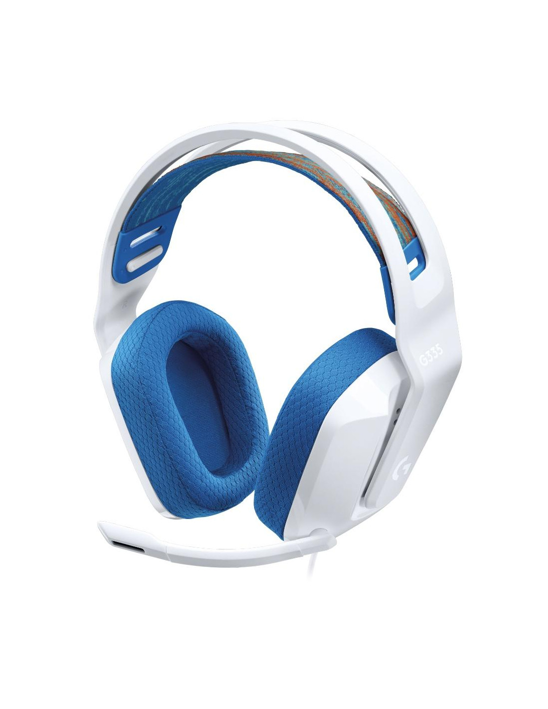 Lightweight and cool. G335 is where color and comfort combine. Featuring a suspension headband design with adjustable strap so you can choose your most comfortable fit. Easy plug-and-play and built-in controls let you quickly connect and jump into the game. Just pick your favorite color to match your awesome style. The suspension headband design distributes weight and relieves pressure points. Soft, breathable memory ear cups and sports mesh material surround the ear and provide just the right amount of force to stay firmly in place. At only 240 grams, G335 is a smaller and lighter version of the award-winning G733 LIGHTSPEED wireless headset. Easily get into the game using a simple 3.5 mm audio jack. G335 works with Xbox®, PlayStation®, Nintendo Switch™ as well as most PCs, laptops, or mobile devices. The soft elastic headband conforms to your head and can be adjusted for the perfect fit. Slide the ear cups up and down to make them feel just right. Use the volume roller on the ear cup to turn up your game or music. Flip up the mic to instantly mute and move it out of the way.