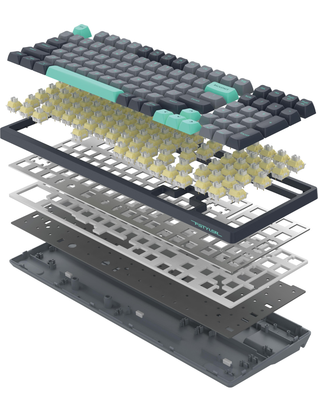 Гаскет маунт е конструкция, която използва демпфиращи материали (като силикон, нитрил или полиуретан), за да изолира платата и плейта от корпуса на клавиатурата. Това намалява резонанса, вибрациите и паразитните шумове, правейки писането по-меко, равномерно и приятно.