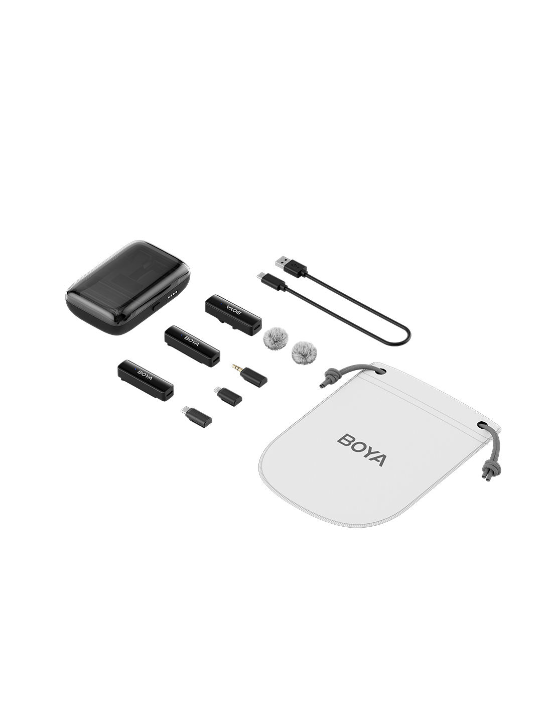 BOYALINK е решение 3 в 1 за многостранни нужди от висококачествен аудио запис. Приемникът разполага с три взаимозаменяеми адаптера 3.5 mm, USB-C и Lightning, осигуряващи универсална съвместимост с камери, мобилни устройства и компютри. BOYALINK също така разполага с автоматично сдвояване, шумопотискане с едно щракване и зареждане по време на запис, което го прави идеален за стрийминг на живо, vlogging, мобилна журналистика и др.