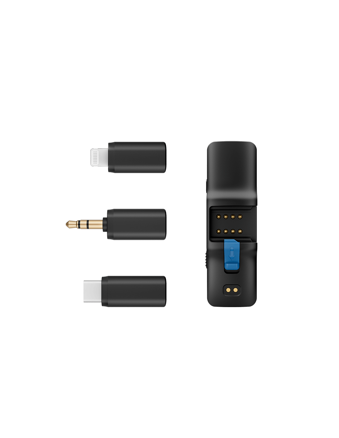 - Три адаптера (3.5 mm, USB-C и Lightning) с удобен дизайн на катарама за лесна смяна и универсална съвместимост с множество устройства.