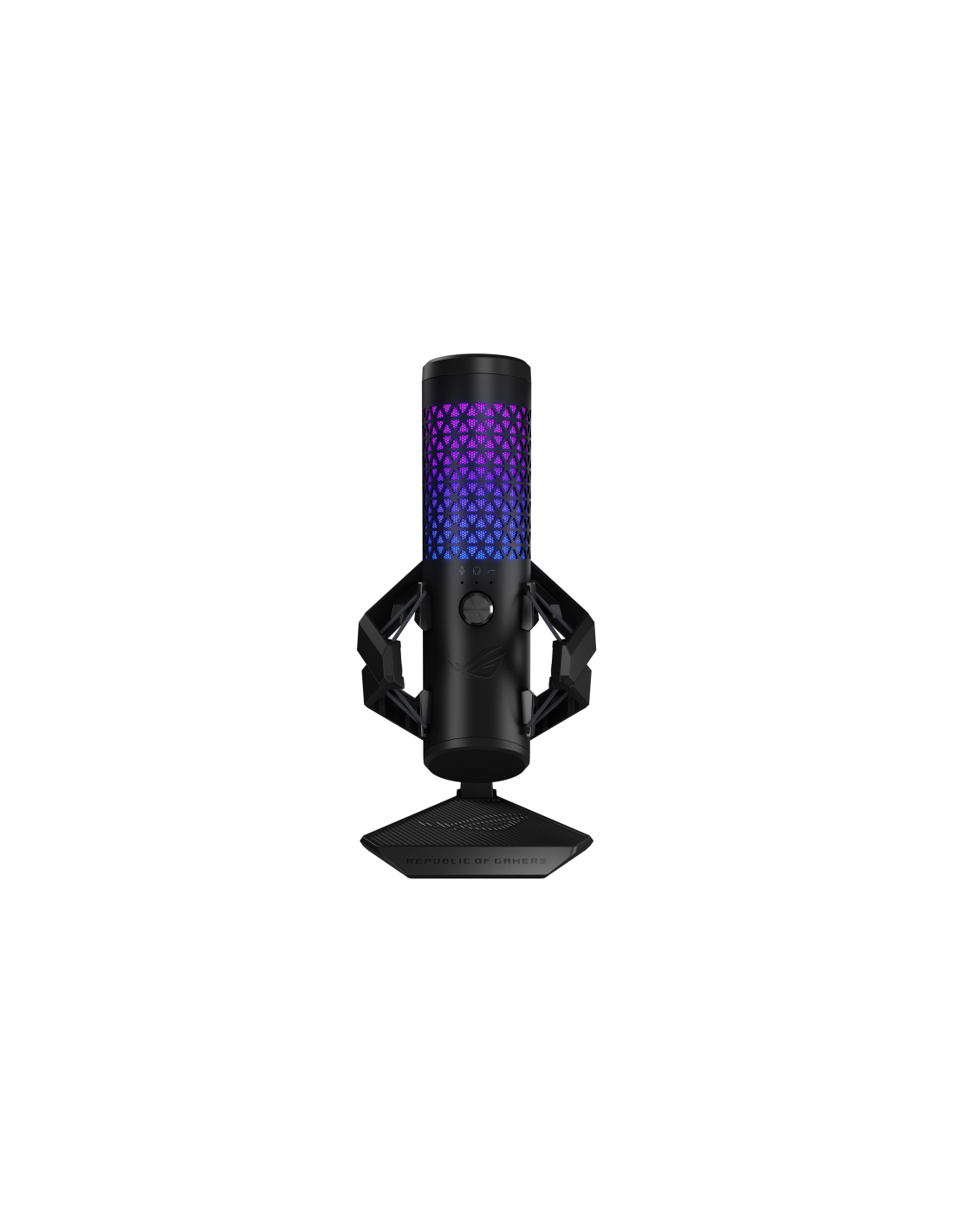Професионален кардиоиден кондензаторен микрофон за игри разполага с 25 mm кондензаторна капсула, 192 kHz / 24-битова честота на семплиране, високочестотен филтър, вграден поп филтър, премиум метална шокова стойка и ASUS Aura Sync RGB осветление.