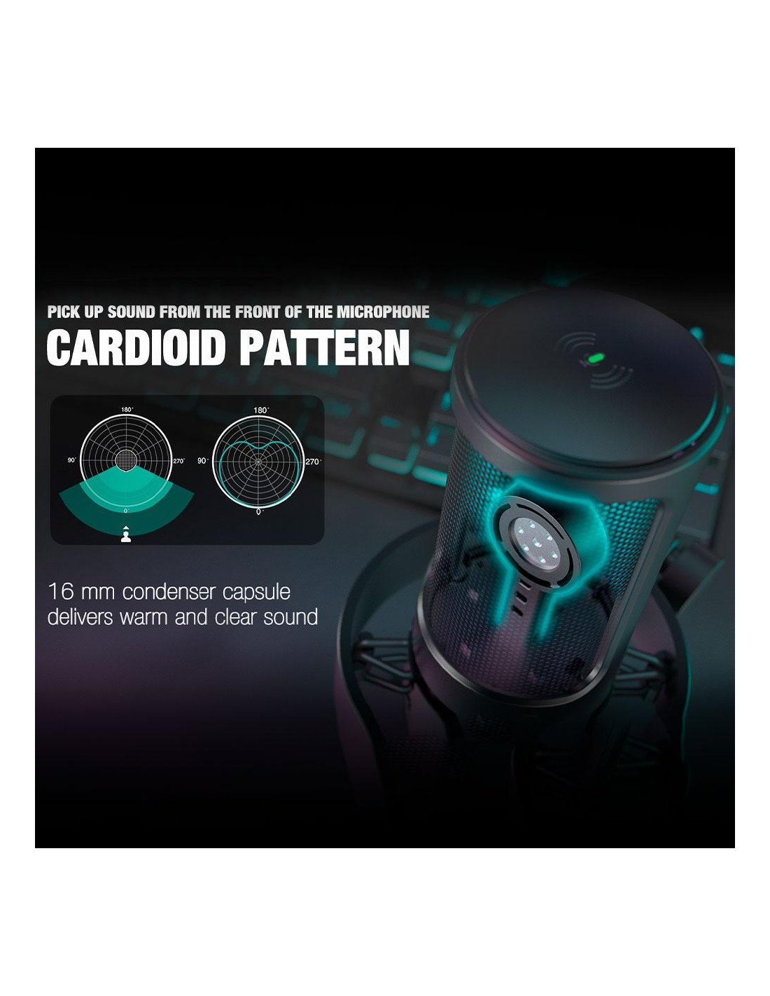 Ясно и чисто аудио качество: С високочувствителна кондензаторна капсула, микрофонът улавя всеки нюанс на гласа – дори и най-нежните тонове. Кардиоидният модел ефективно намалява фоновия шум от вентилатори или компютърна вентилация.