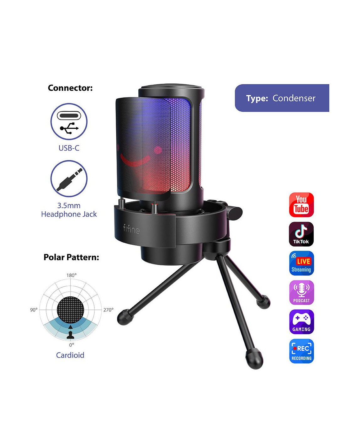 Настолен микрофон FIFINE A8V RGB - Black