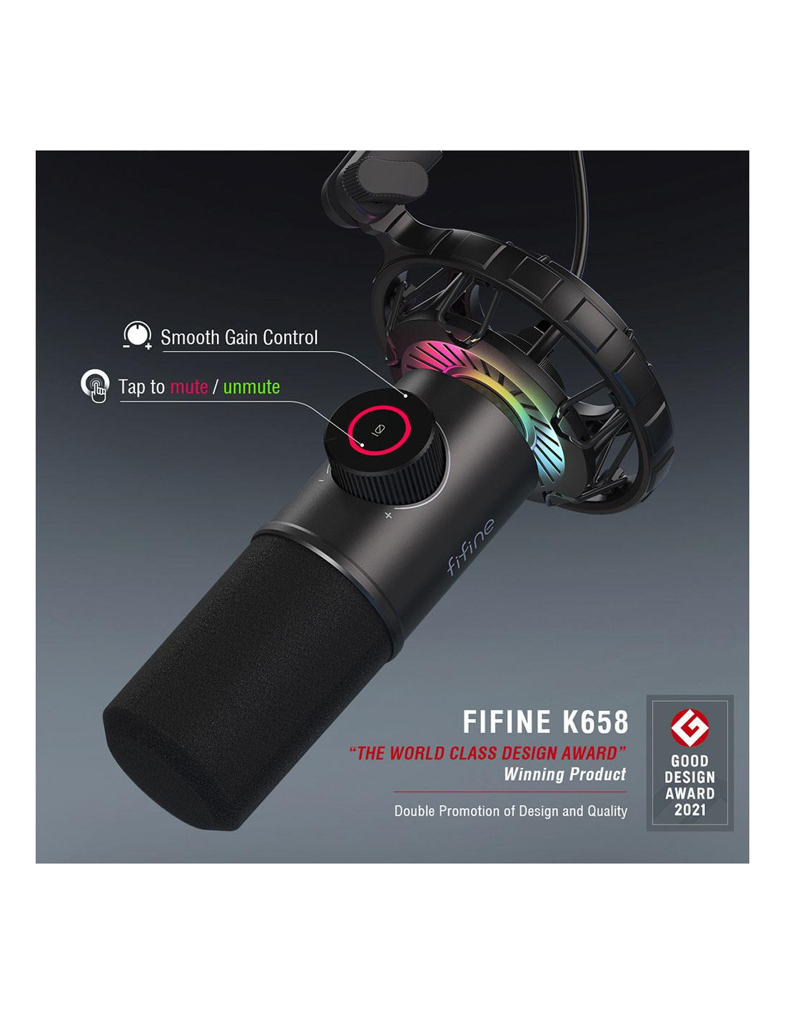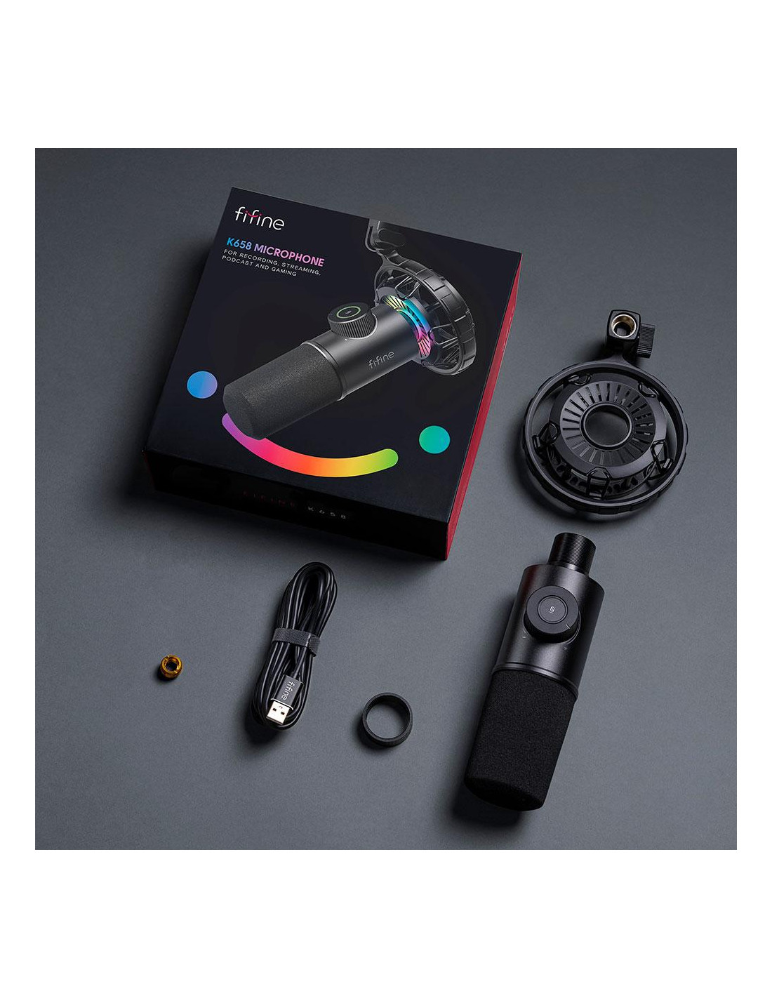 Настолен микрофон FIFINE K658 Dynamic RGB - Black
