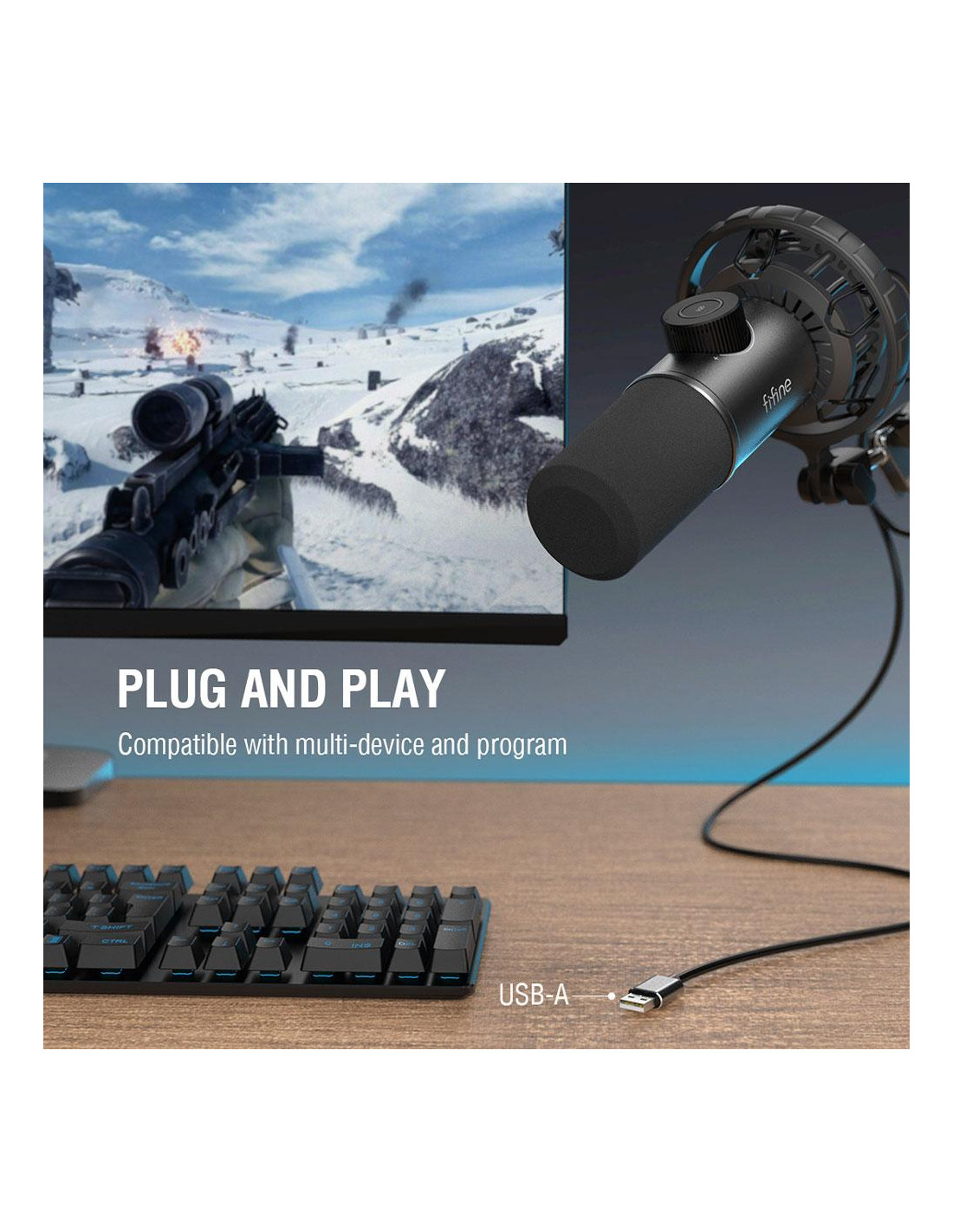 С RGB осветление, жак за слушалки 3.5 мм, Plug-and-Play и кардиоиден модел с shock mount