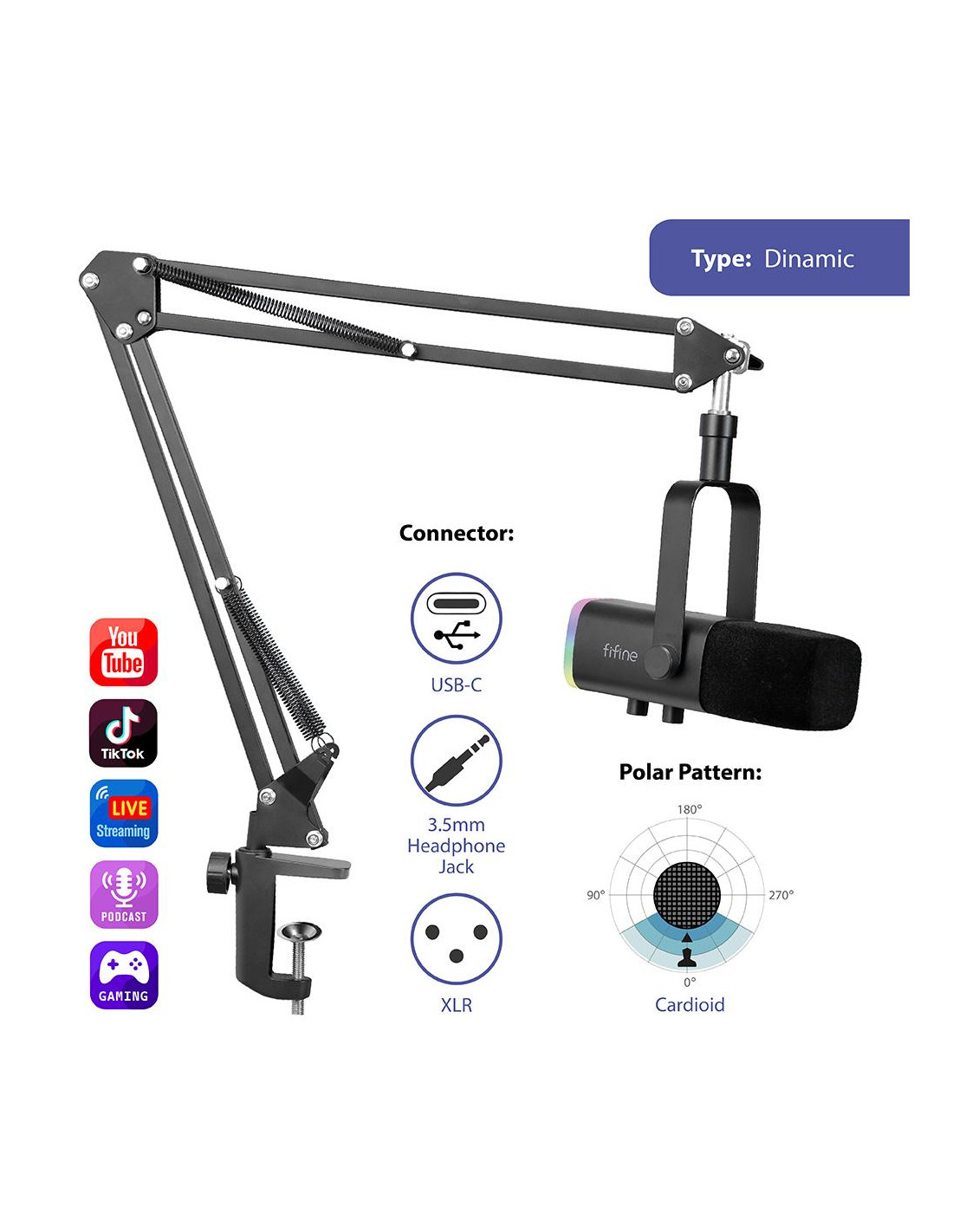 FIFINE AM8T USB/XLR Динамичен Микрофон с Регулируемо Рамо