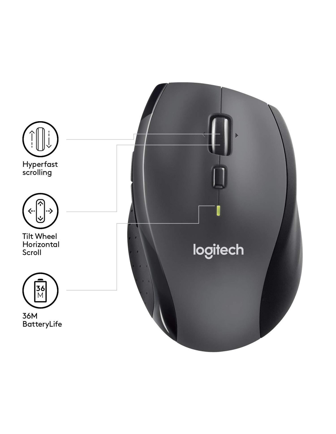- Logitech Marathon Mouse M705 използва по-малко от половината от мощта на сходни безжични мишки