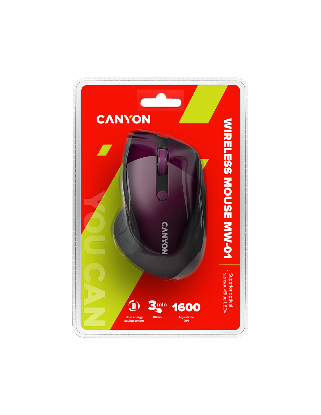 CANYON 2.4Ghz wireless mouse, optical tracking - blue LED, 6 buttons, DPI 1000/1200/1600, Purple pearl glossy