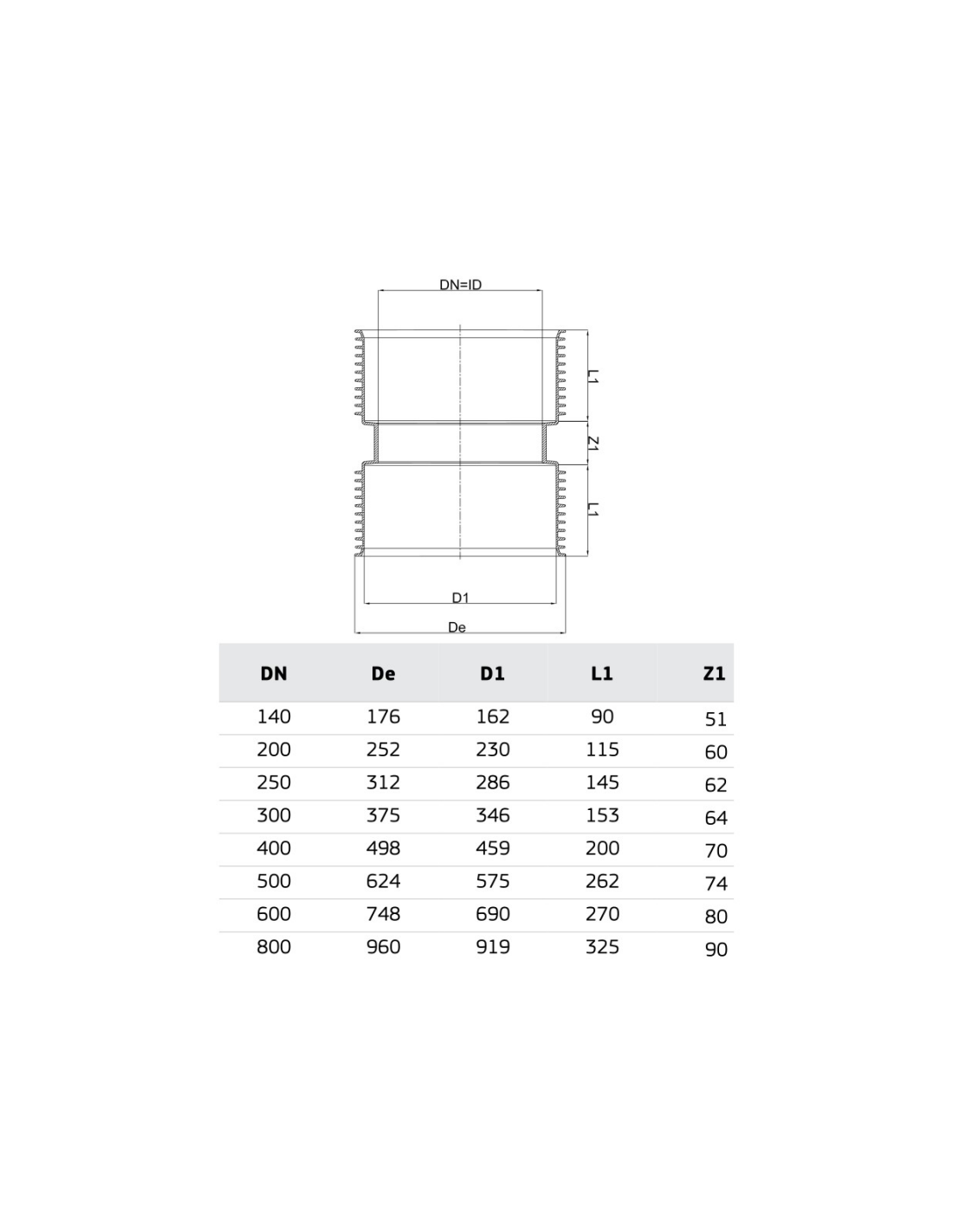 Двойна муфа: Фитинг, проектиран за линейно свързване на тръба със същия диаметър. Продуктът е получен чрез леене на полипропилен.