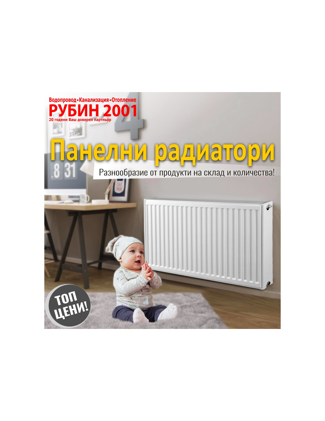 Двупанелен радиатор тип 22 (два панела с две ламели) със странично свързване. Предназначен е за ползване както в локални, така и в централни отоплителни системи. В комплекта има тапа, ръчен обезвъздушител и стенни конзоли.