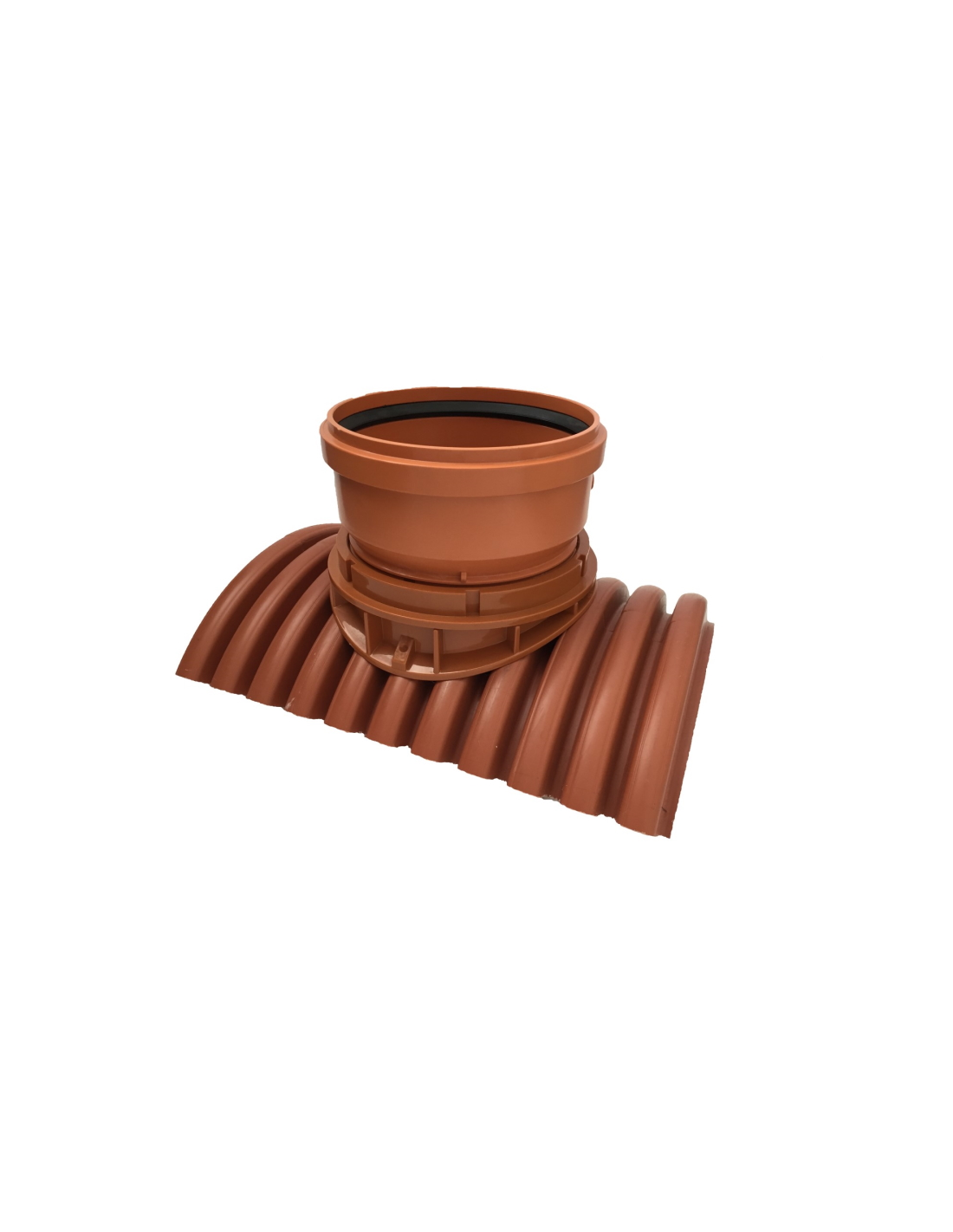Отклонение под прав ъгъл за канализация. Седлово отклонение или седлова връзка се използва при присъединяване на гофрирани/оребрени или гладки канализационни тръби от сградни отклонения към основна канализация.
