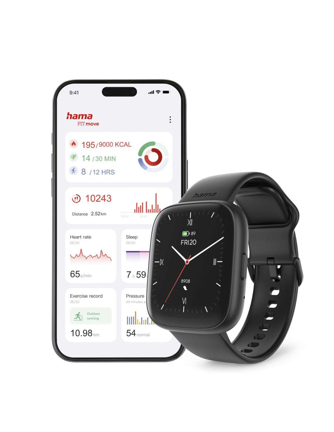 HAMA Смарт часовник "4000", функция за разговори, анализ на съня, водоустойчив, 46 мм, черен