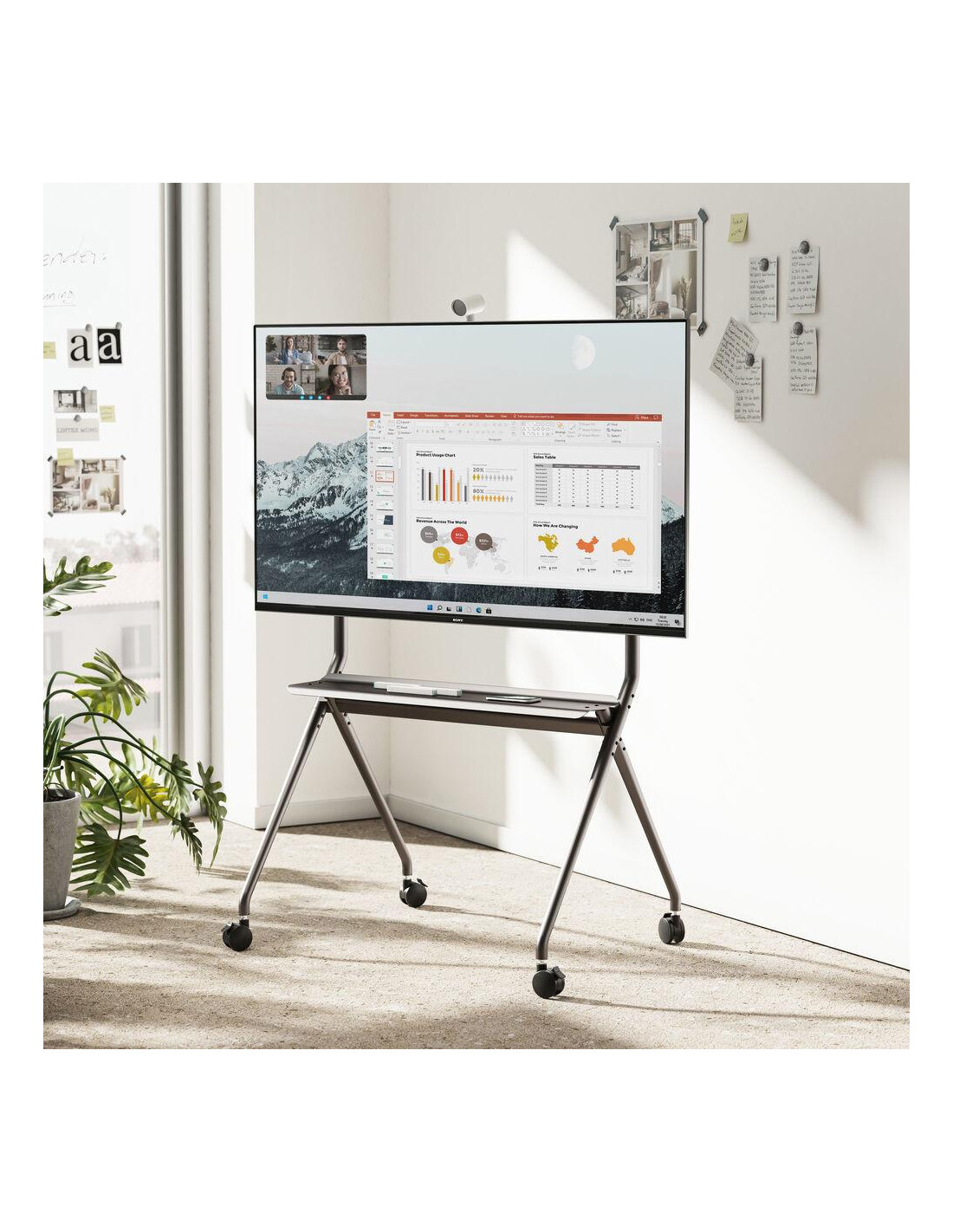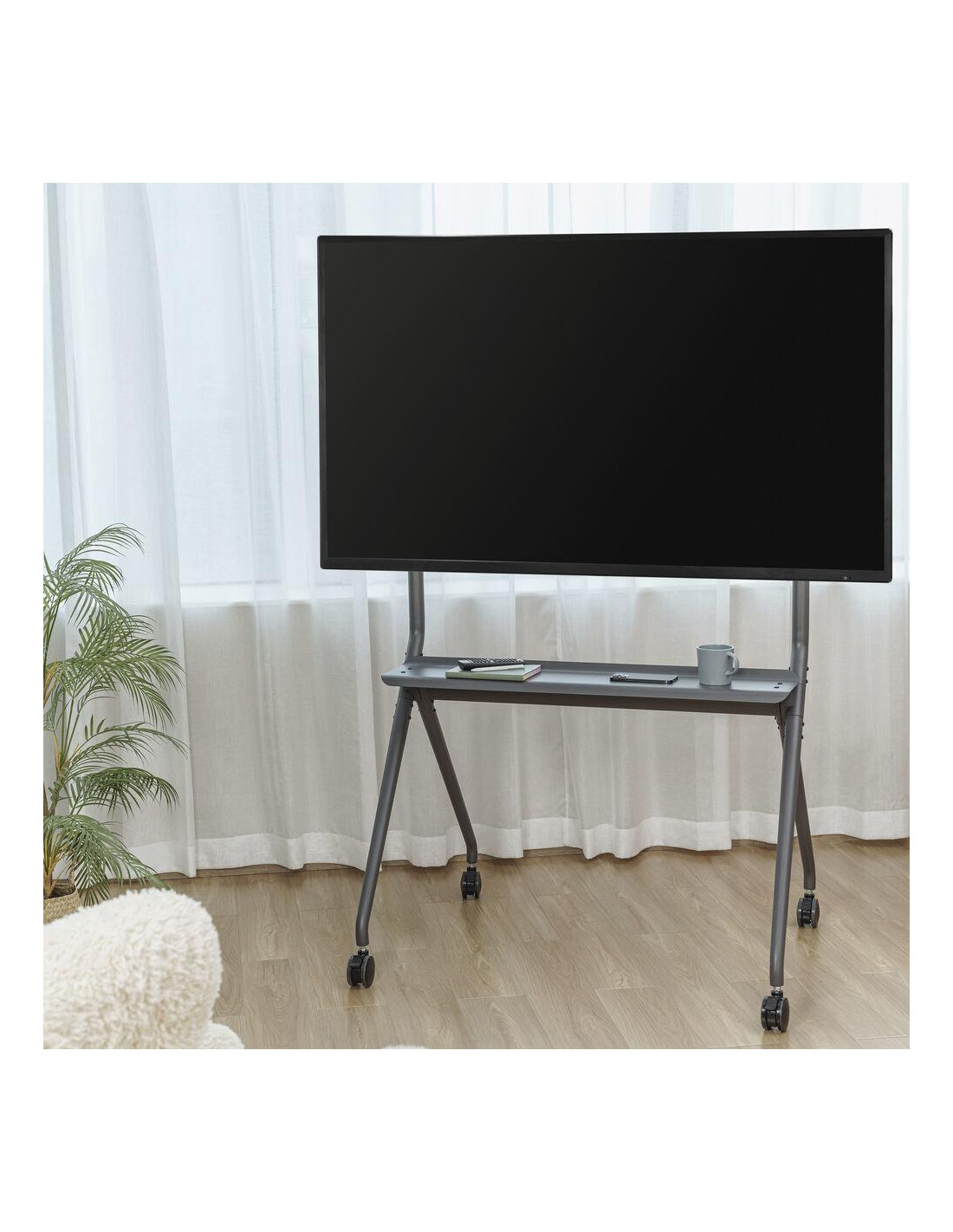 Мобилна стойка представлява цялостно мултимедийно решение, което превръща всеки голям дисплей в мобилна презентационна станция. Благодарение на здравата си конструкция от стомана, тя осигурява безкомпромисна опора дори за най-тежките интерактивни монитори или широкоформатни телевизори. Четирите подсилени колела позволяват плавно придвижване между кабинети и зали, независимо от подовата настилка, а интегрираните спирачки гарантират пълна неподвижност по време на работа.