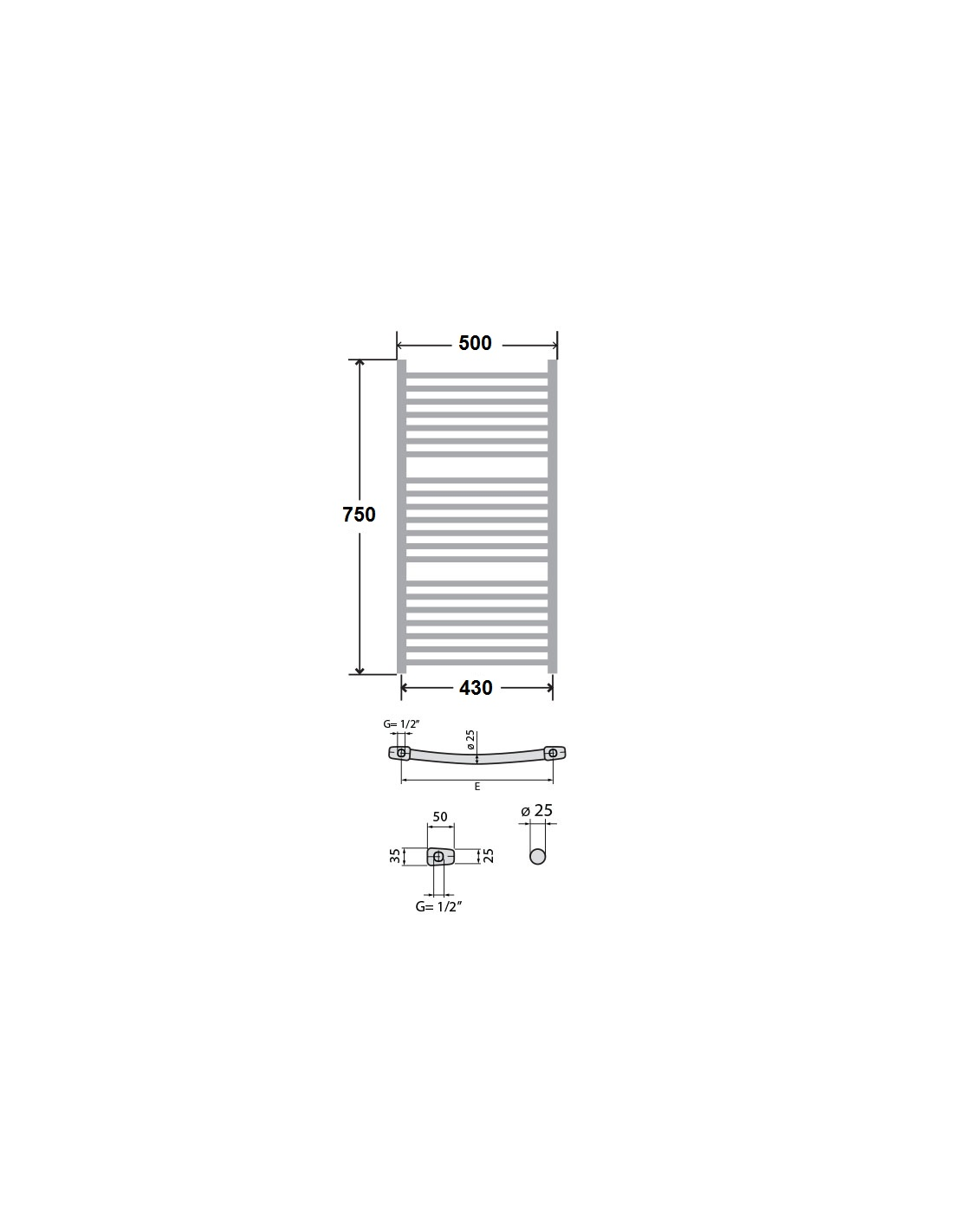 Стоманена лира за баня LUX 750/500 - 588W