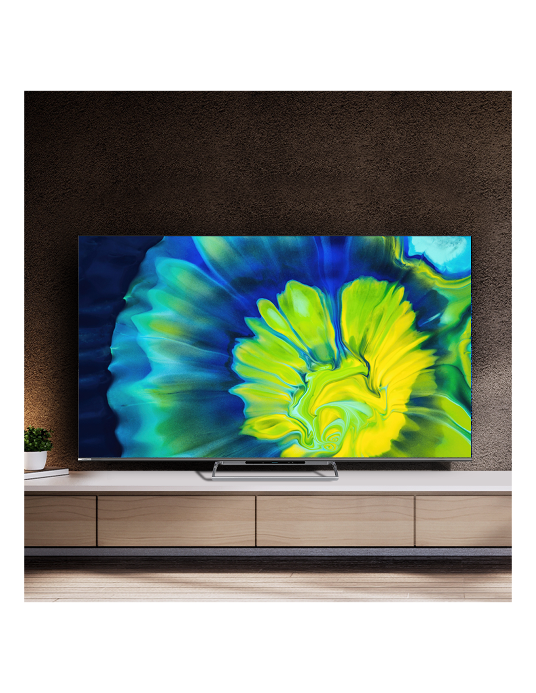 Телевизорът впечатлява с минималистичен и елегантен дизайн с тънки рамки и стабилна метална стойка, която пасва идеално във всяко модерно жилище. Поддръжката на стандарт VESA 400×200 мм позволява лесно монтиране на стена, което допълнително оптимизира пространството. Енергийна ефективност и технологии като автоматичен контрол на яркостта (ABC) намаляват консумацията на енергия и натоварването на очите.