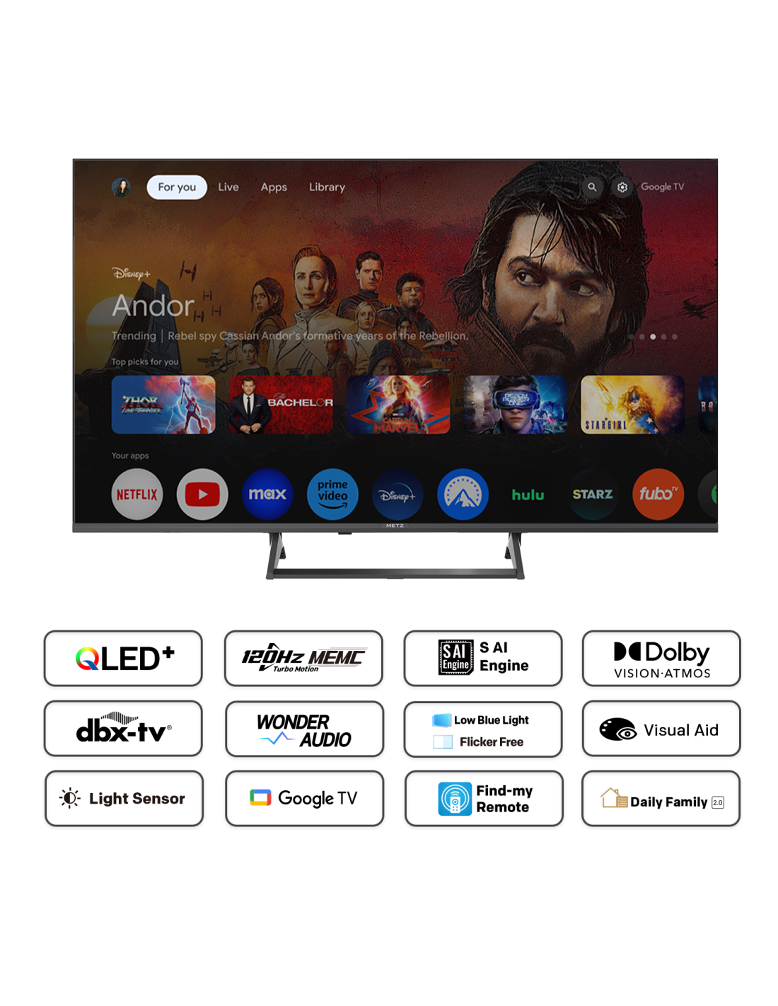 METZ 50" QLED SMART TV – 4K UHD, 120Hz, Google TV, HDR, Dolby Vision
