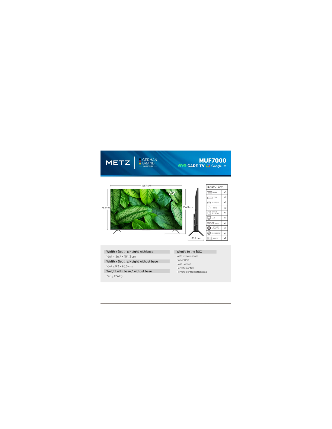 METZ Телевизор 75" UHD LED SMART TV, 4K, Google TV, Frameless