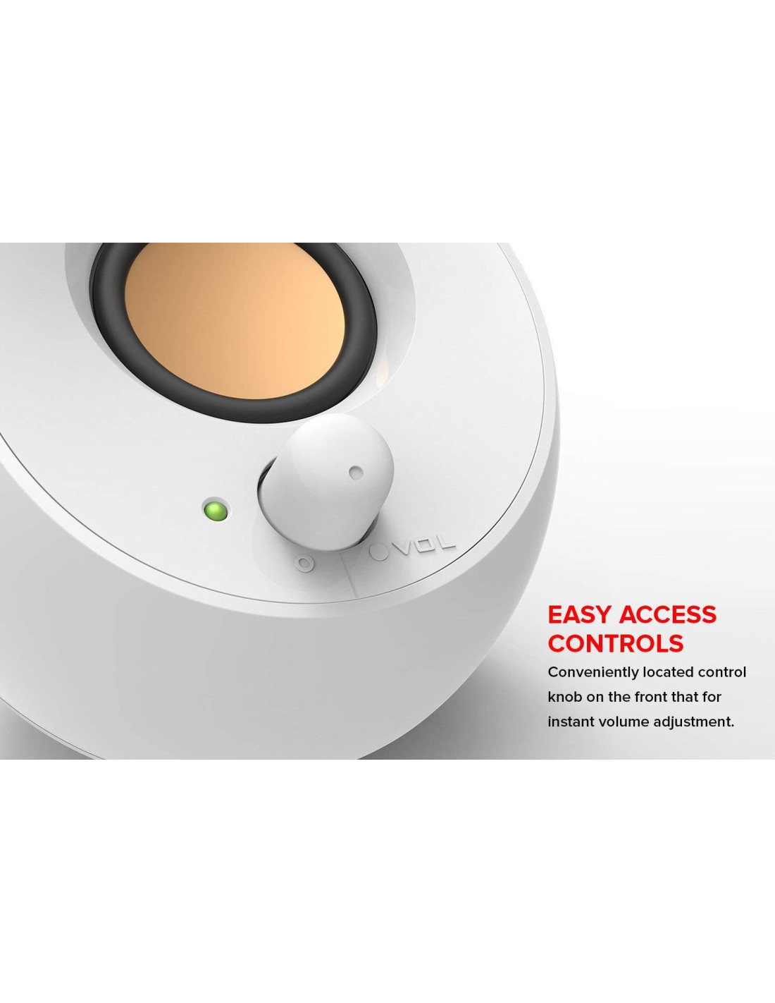 Creative Pebble е елегантна куполообразна 2.0 аудио система, която изглежда перфектно във всеки дом и офис. Отличава се с 45° наклон на говорителите за подобрена аудио прожекция и се захранва от един USB кабел за безпроблемно музикално забавление.