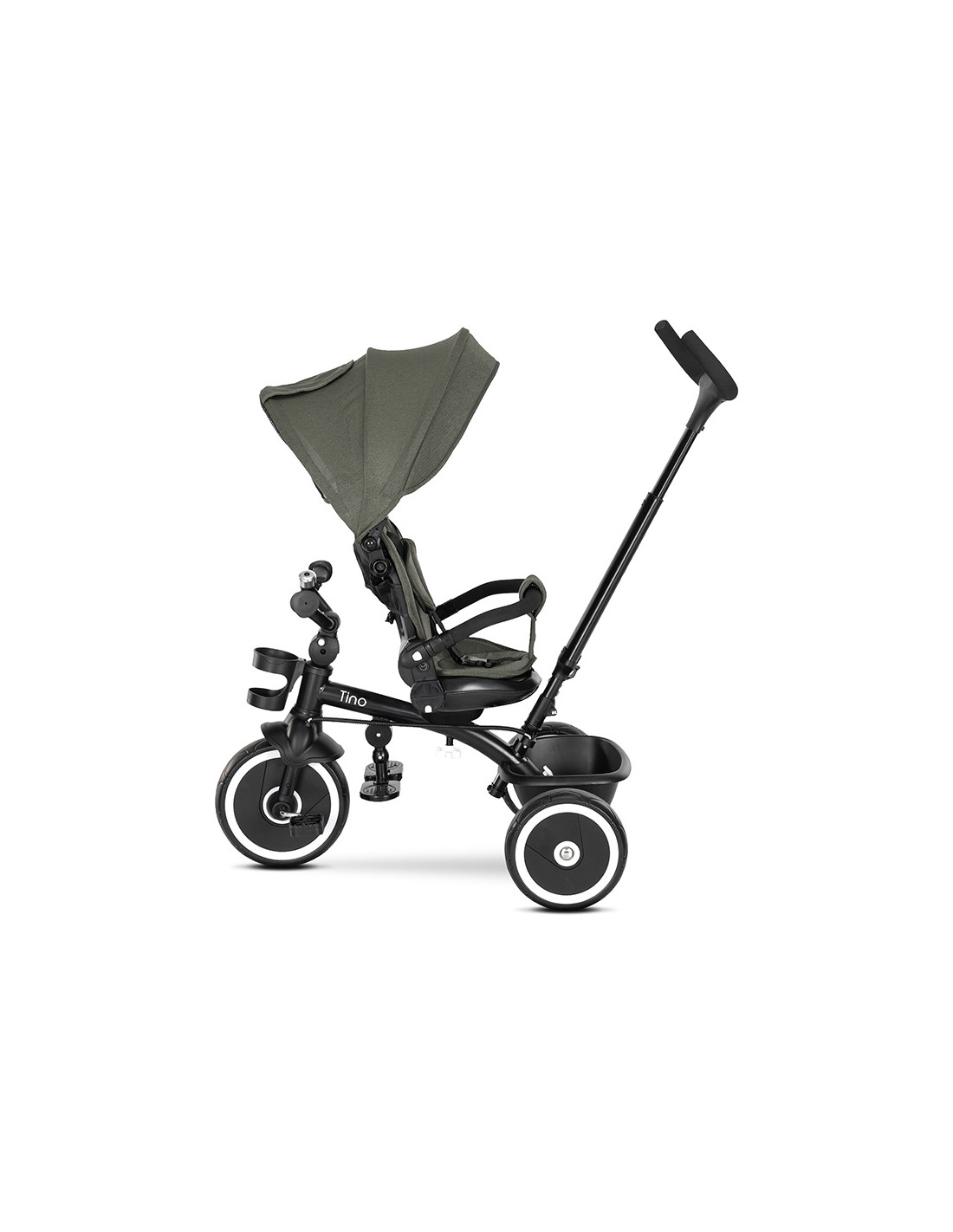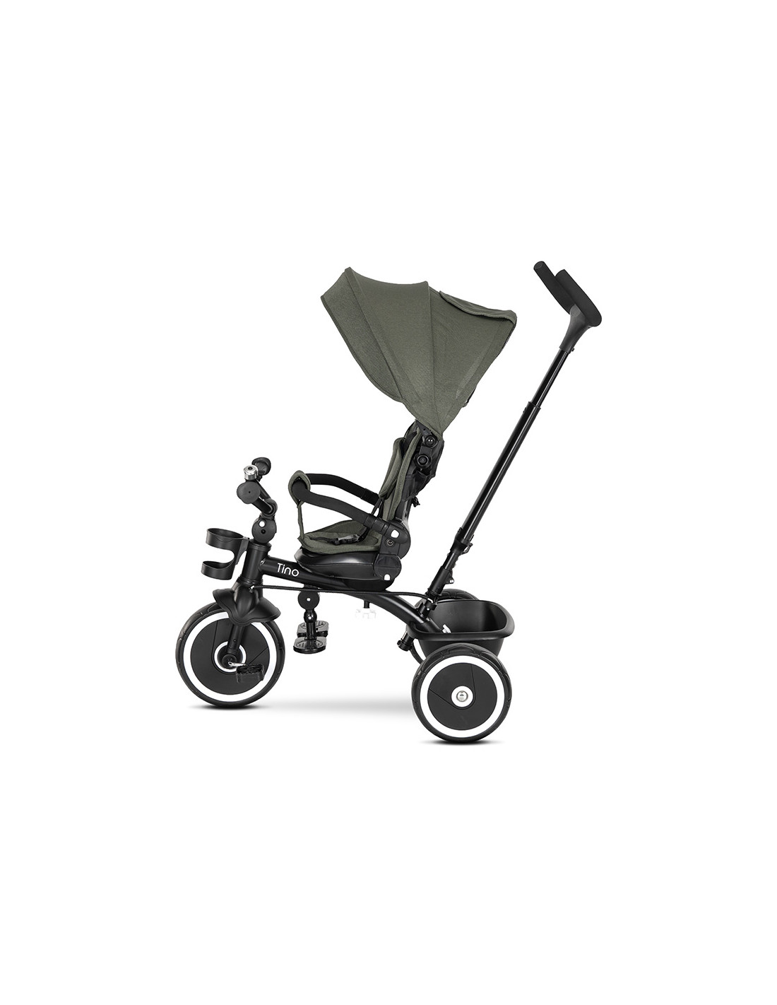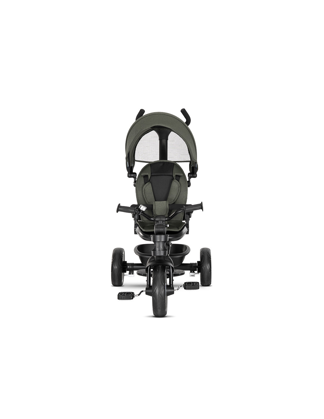сгъваем сенник,прозорче на сенника,звънец,позиция: с гръб към родителя,позиция: с лице към родителя,предпазни колани,пластмасов багажник,Бутон за регулация на кормилото,Индивидуални спирачки на задните колела,ротация на 360 градуса,регулируема седалка,изцяло премахваща се тапицерия за лесно почистване,многопозиционна родителска дръжка,TPR ръкохватки,поставка за крачета за по-малки деца,сгъваема поставка за крачета,вкл./изкл. на механизма със свободно движение,отстраняем гриф,поставка за чаша,Неплъзгащи педали,Седалка с облегалка,Велосипед триколка,Накланяща се облегалка в позиция гръб към родителя,Накланяща се облегалка в позиция с лице към родителя///