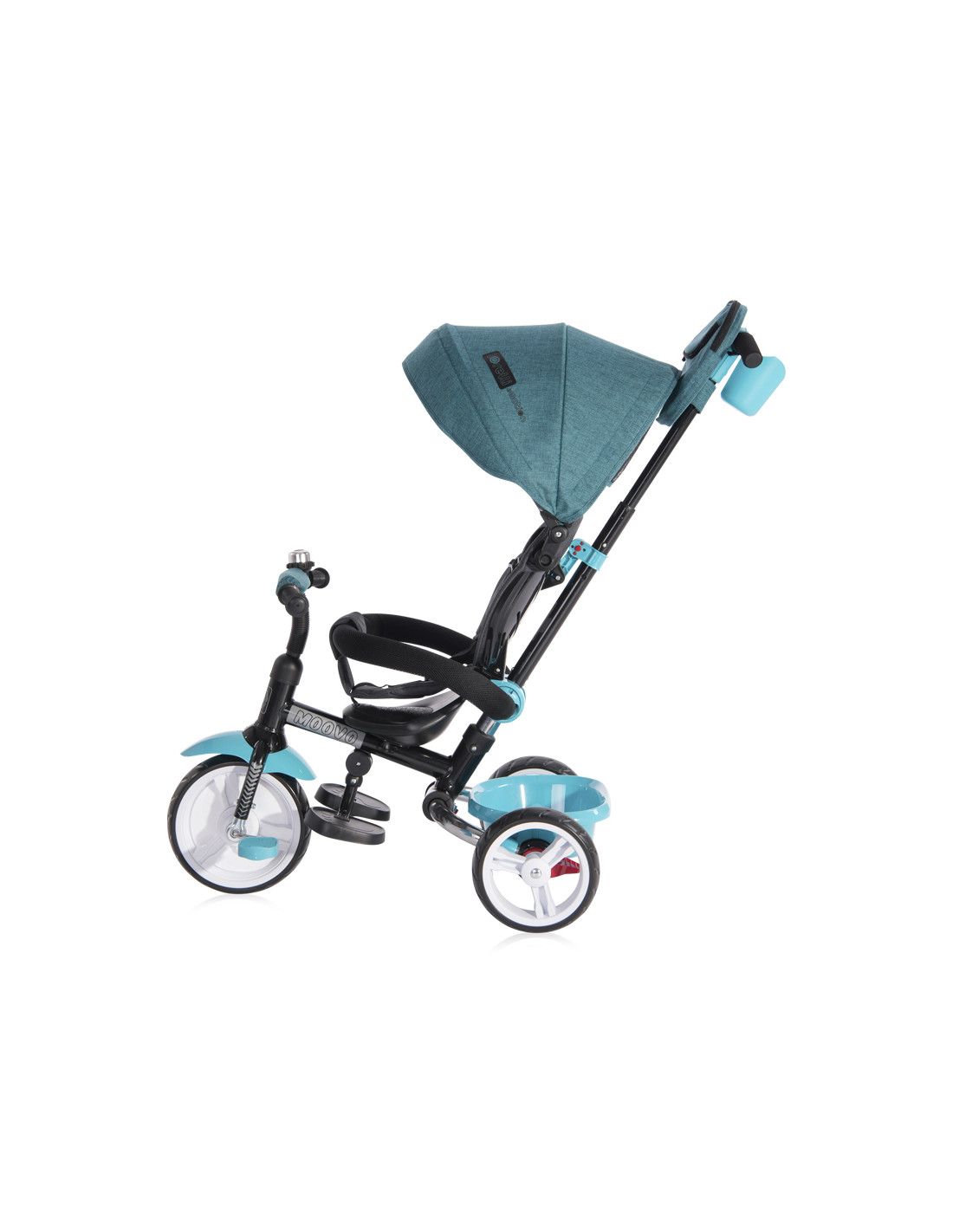 лесно сгъваема,сгъваем сенник,предпазен гриф,звънец,сгъваема поставка за крачета,позиция: с гръб към родителя,позиция: родителски контрол,триколка,пластмасова поставка за чаша или шише,предпазни колани,пластмасов багажник,Скрит вътрешен механизъм за родителски контрол на предното колело,чанта,дъждобран за триколка /не е включен/,регулируема седалка,изцяло премахваща се тапицерия за лесно почистване,вкл./изкл. на механизма със свободно движение///